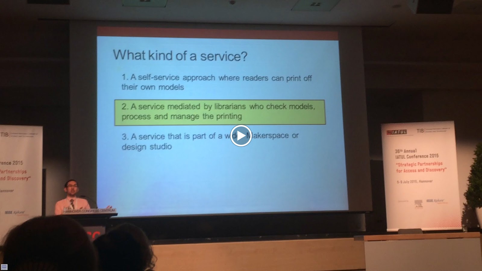 Mr. Strobel highlighted the TIB’s video portal [https://av.getinfo.de/?0], which allow for +2900 videos / 1900 films [mostly open access] to be searched, using automatically generated metadata. Named Entity Recognition is leveraged to for the index. An algorithm is used to disambiguate the terms. The resultant taxonomic schema is only partly semantic, with the German name registry [GND] providing sub-heading for the semantic part. Thesauri were included to increase synonym matching.